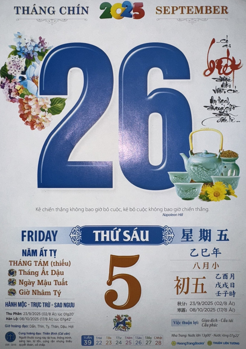 Thứ 6 ngày 26 tháng 9 năm 2025