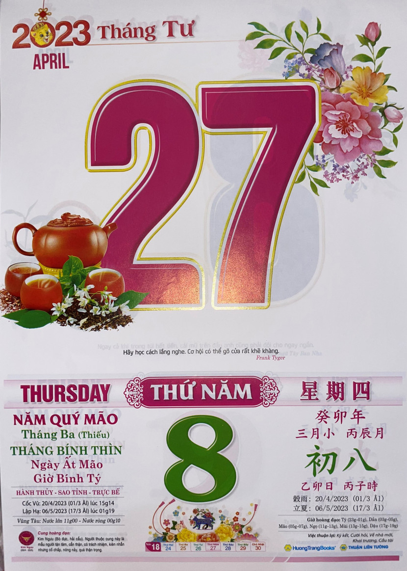 Thứ 5 ngày 27 tháng 4 năm 2023