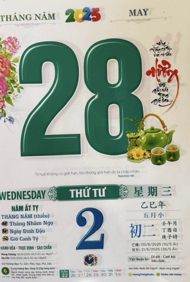 Thứ 4 ngày 28 tháng 5 năm 2025