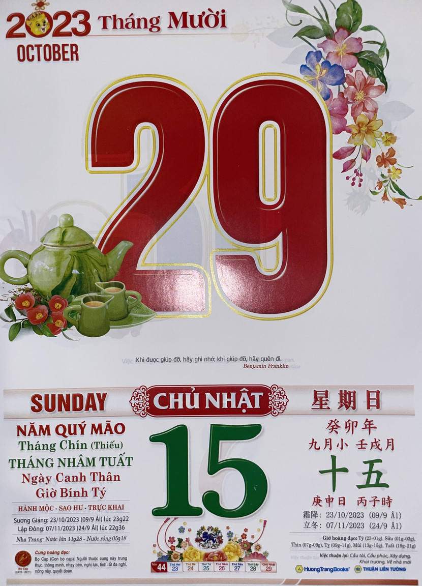 Chủ nhật ngày 29 tháng 10 năm 2023