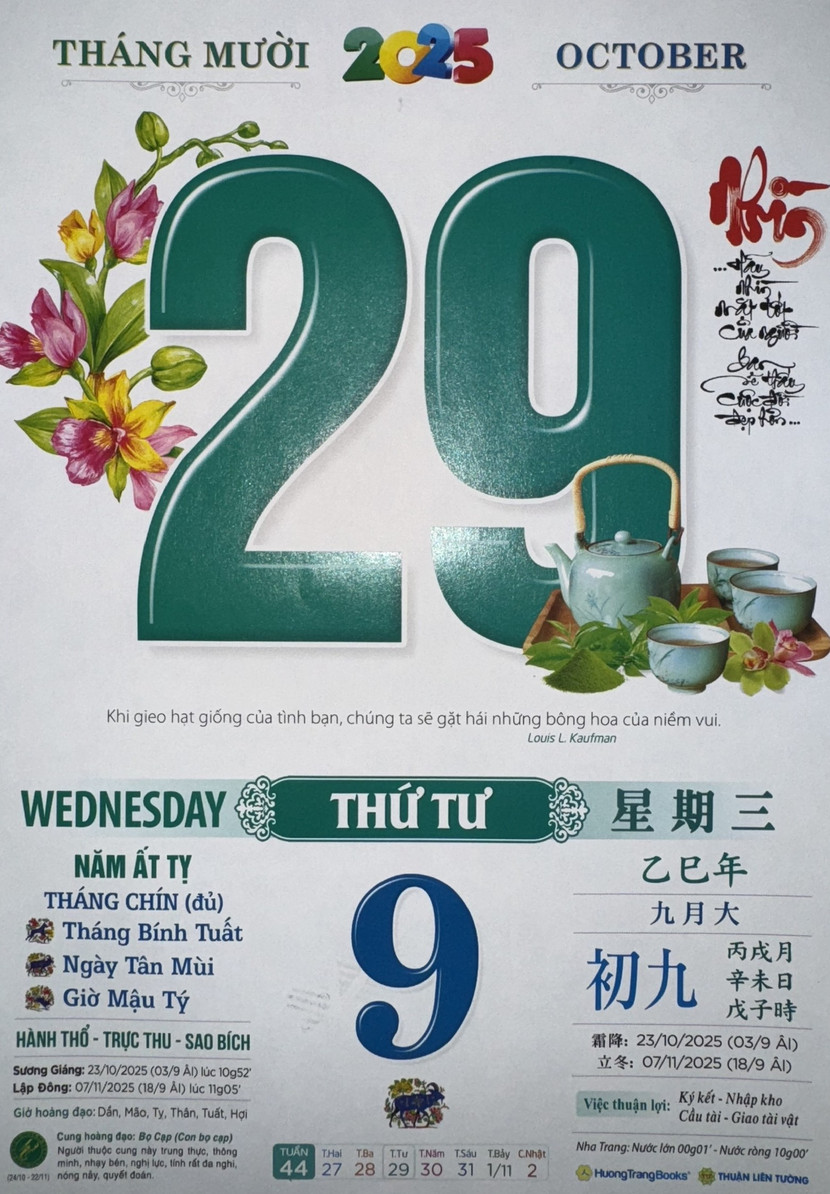 Thứ 4 ngày 29 tháng 10 năm 2025