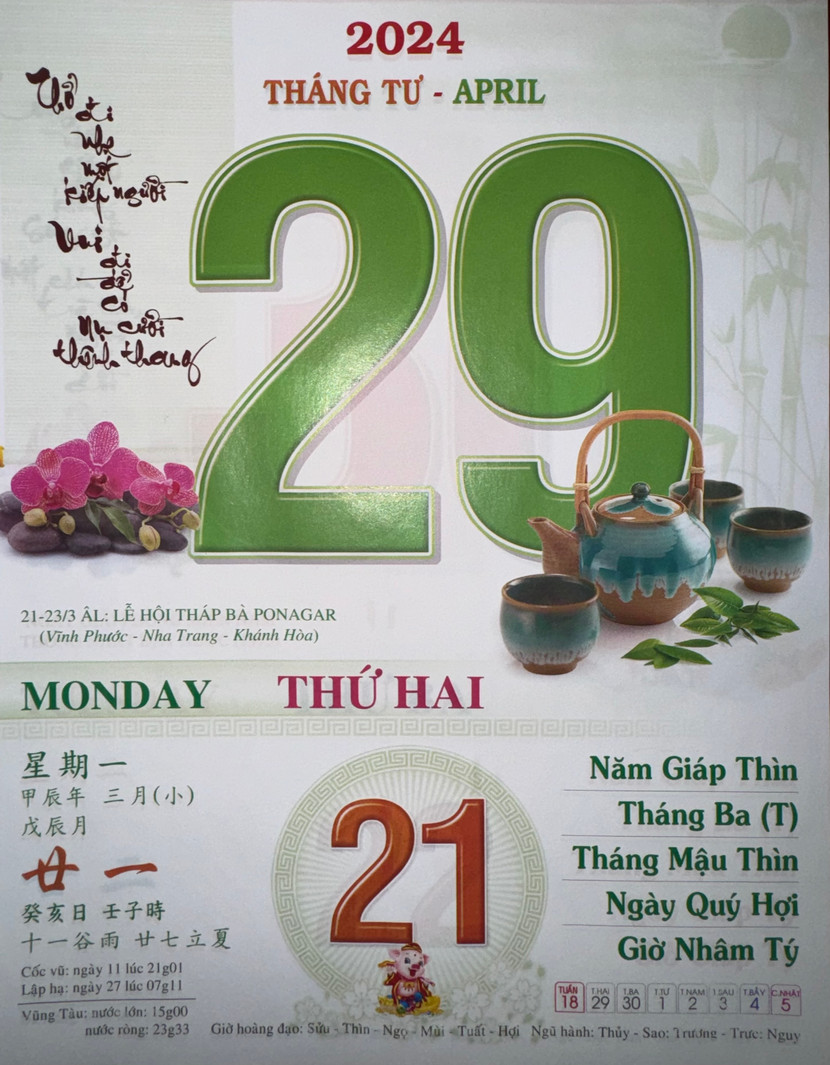Thứ 2 ngày 29 tháng 4 năm 2024