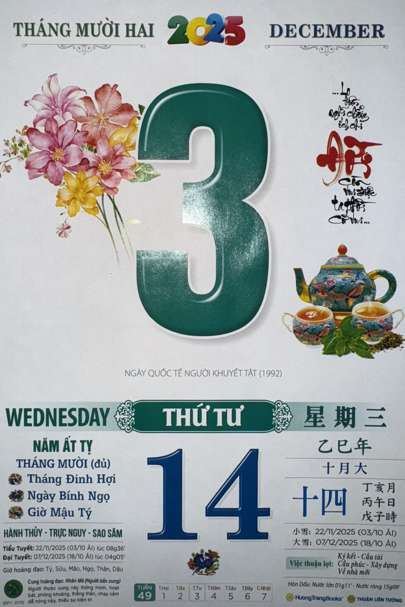Thứ 4 ngày 3 tháng 12 năm 2025