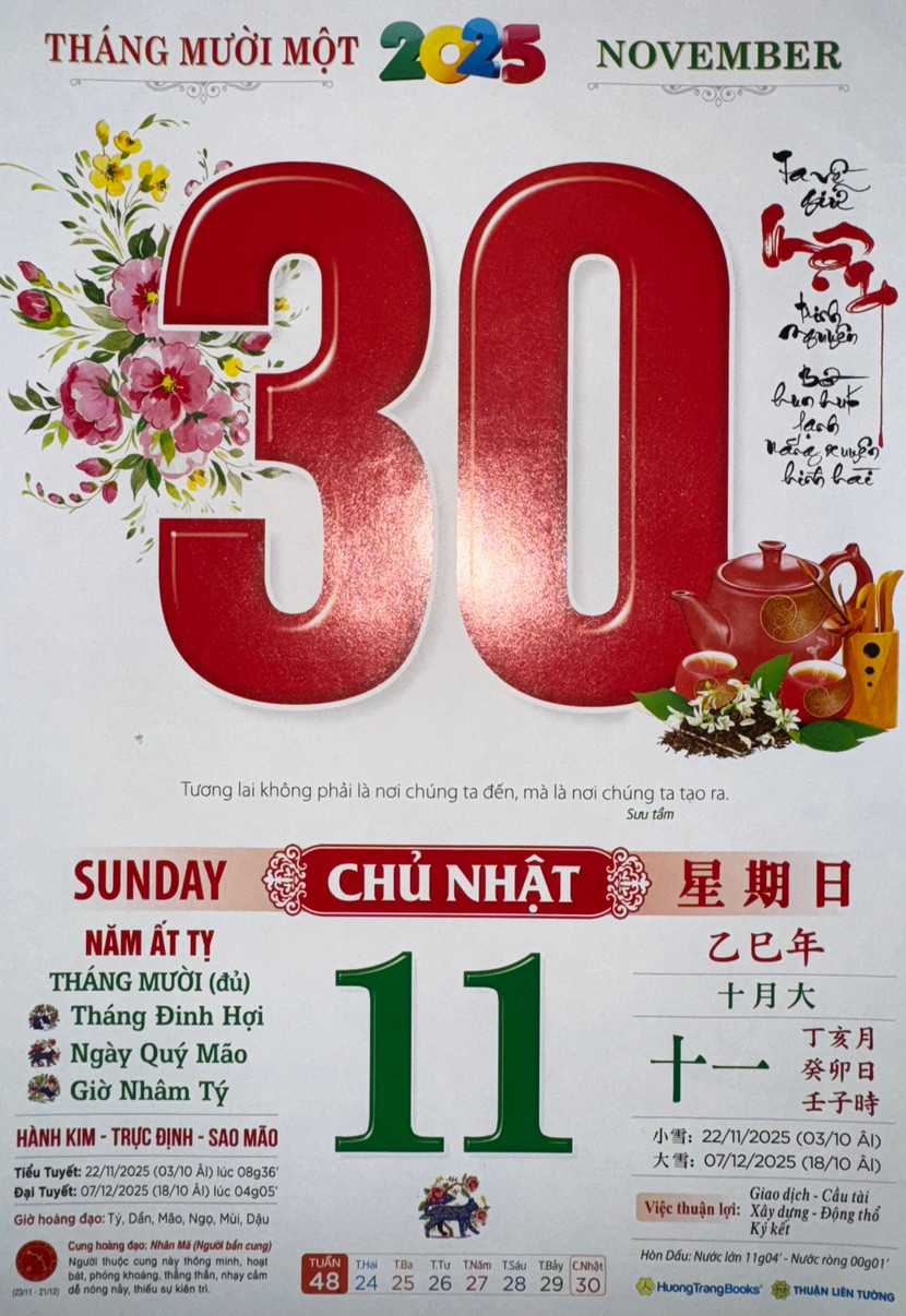 Tiểu Tuyết: 22/11/2025 (03/10 Âm Lịch) lúc 08g36'