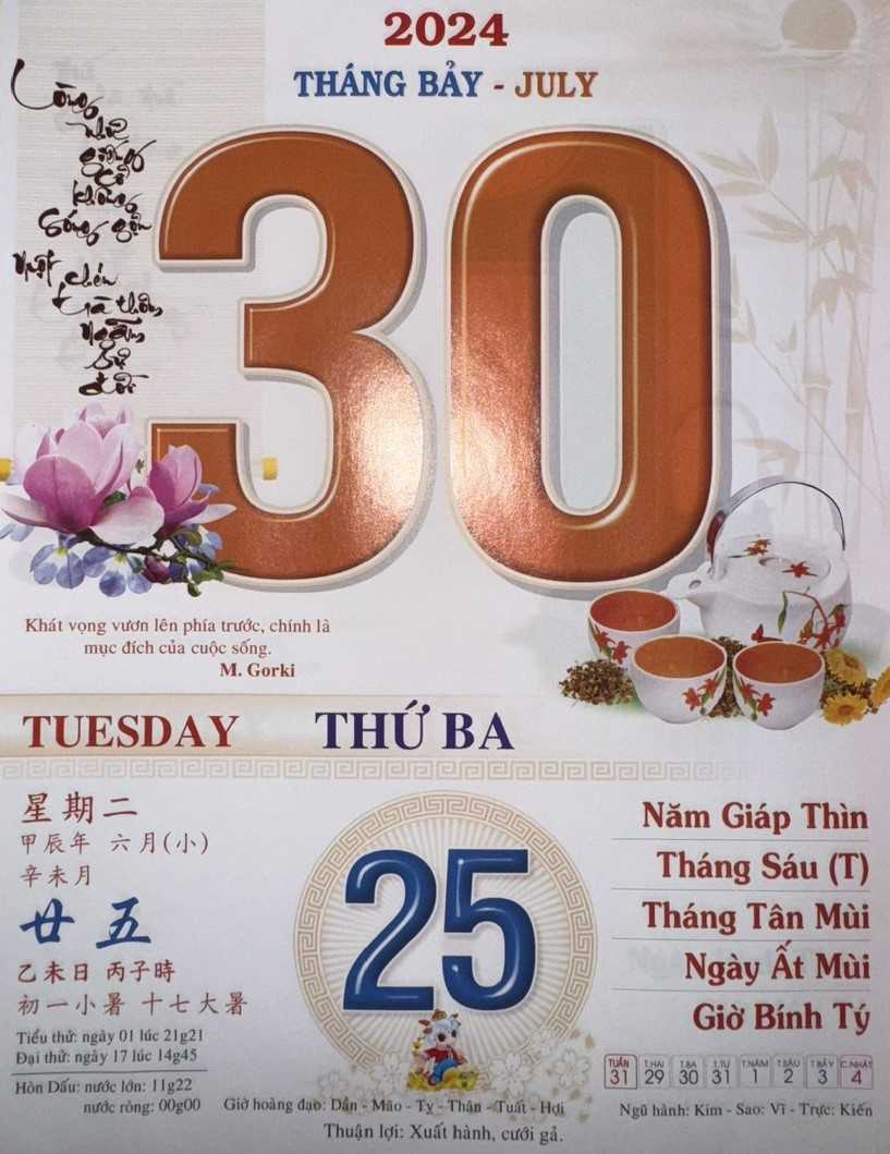 Thứ 3 ngày 30 tháng 7 năm 2024