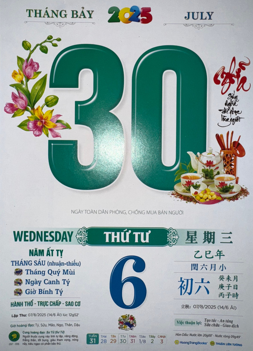 Thứ 4 ngày 30 tháng 7 năm 2025