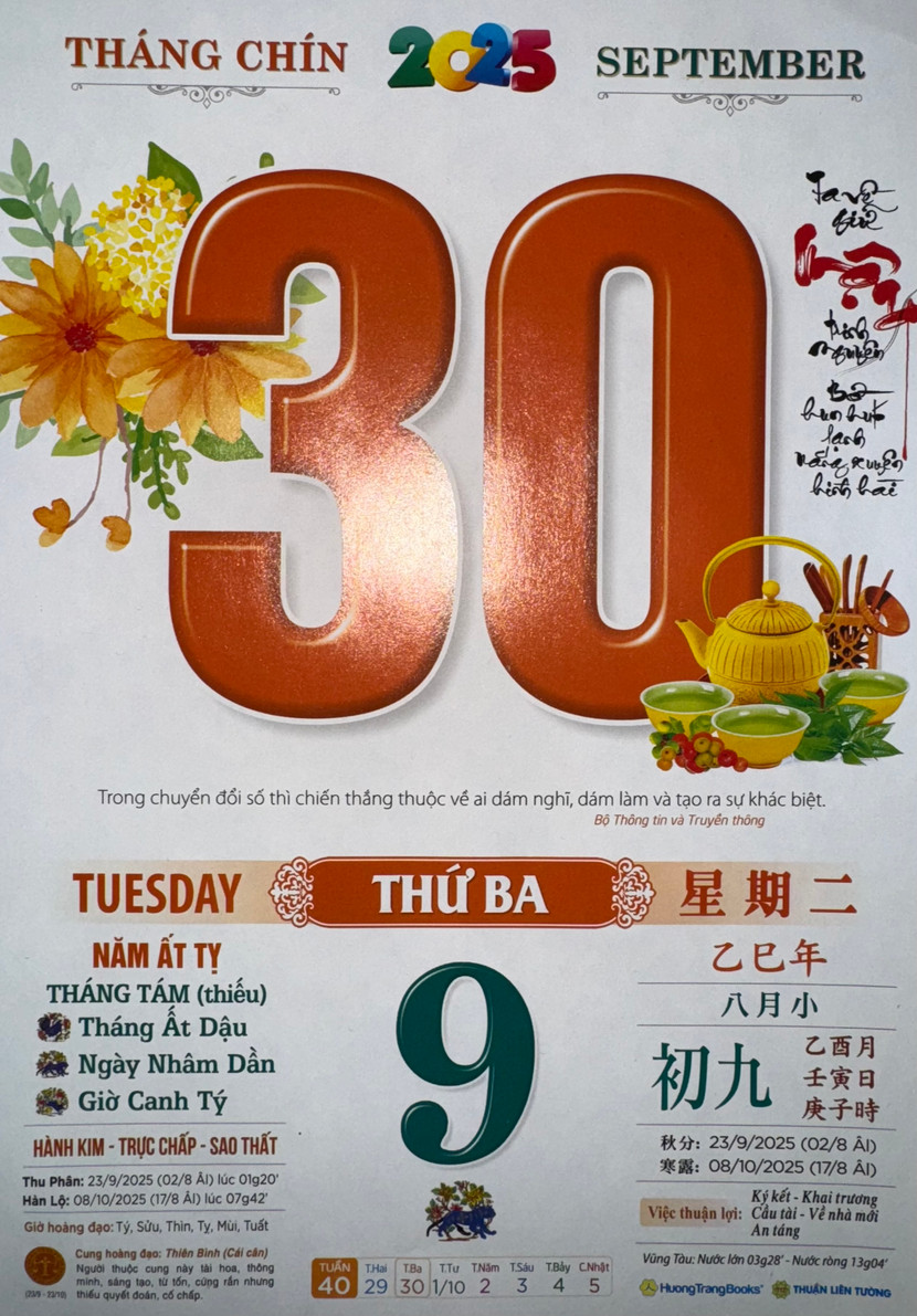 Thứ 3 ngày 30 tháng 9 năm 2025