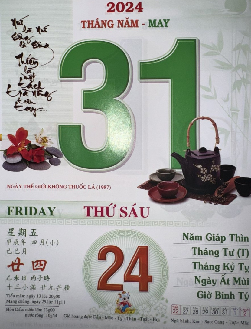 Thứ 6 ngày 31 tháng 5 năm 2024