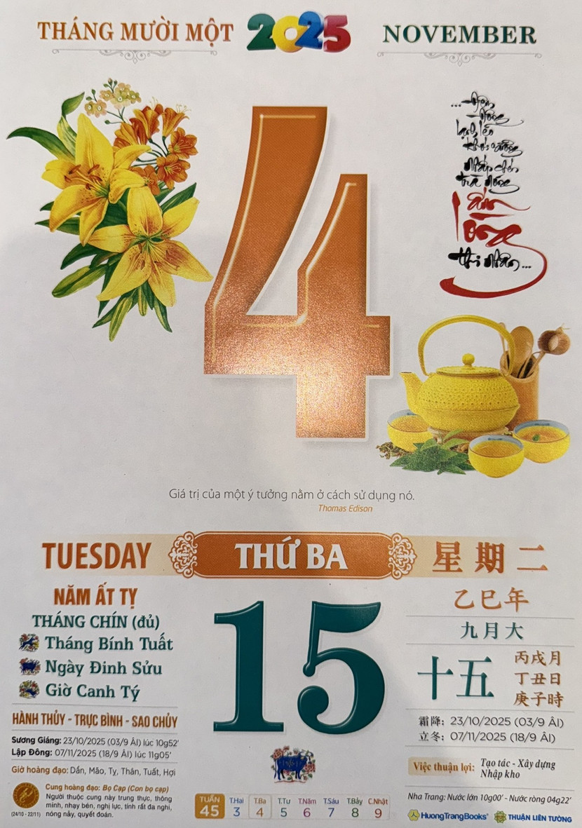Thứ 3 ngày 4 tháng 11 năm 2025