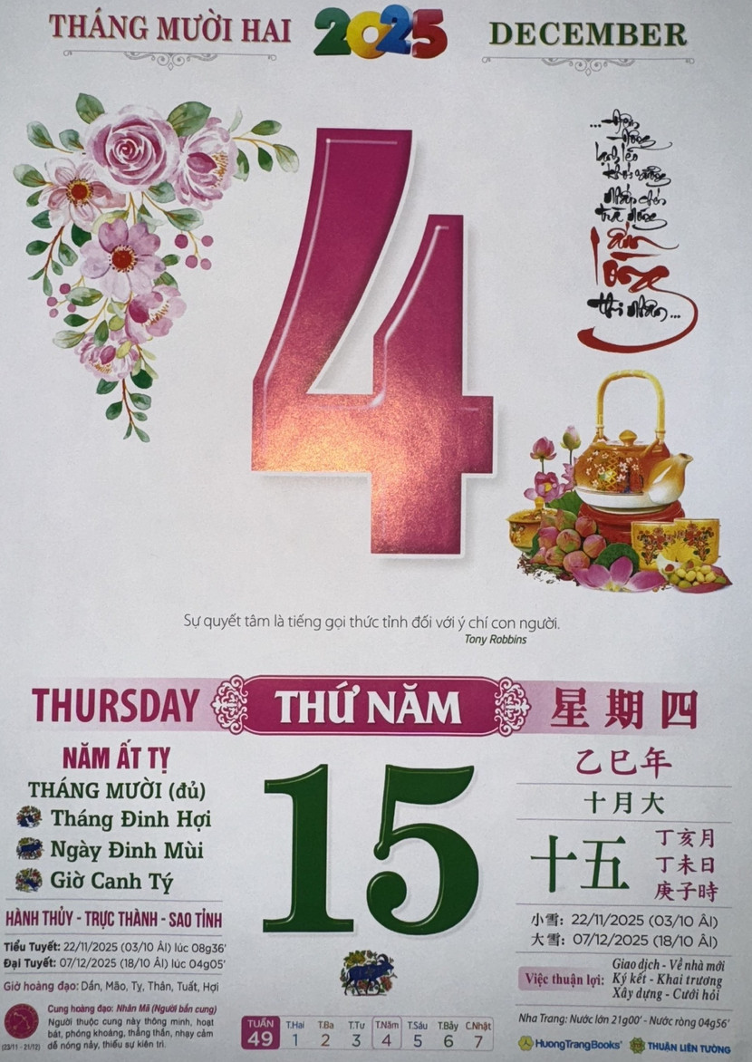 Thứ 5 ngày 4 tháng 12 năm 2025
