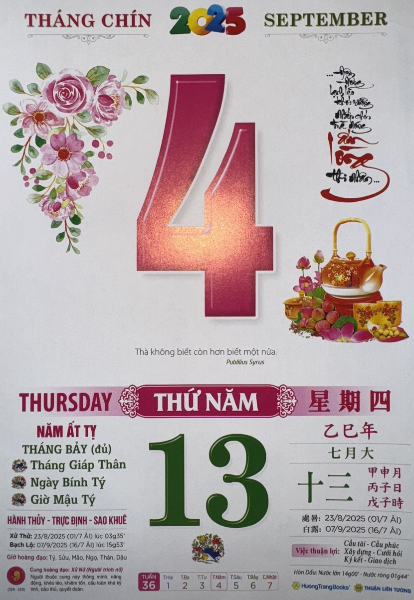 Thứ 5 ngày 4 tháng 9 năm 2025