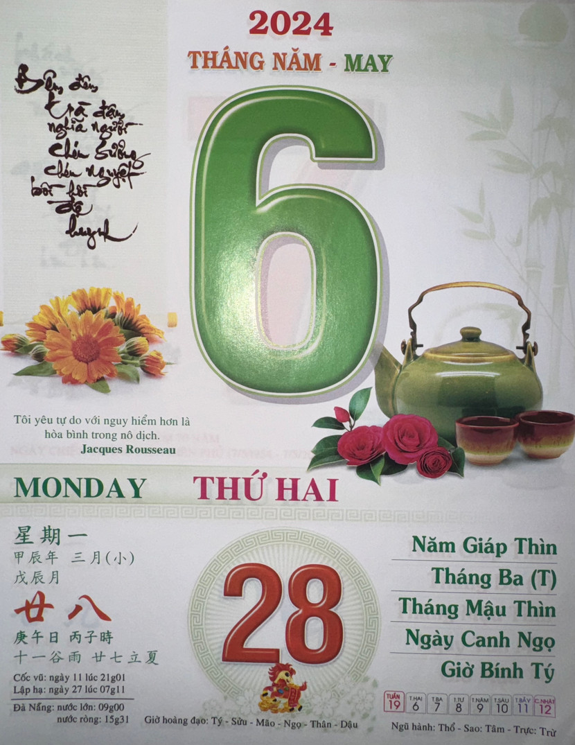 Thứ 2 ngày 6 tháng 5 năm 2024