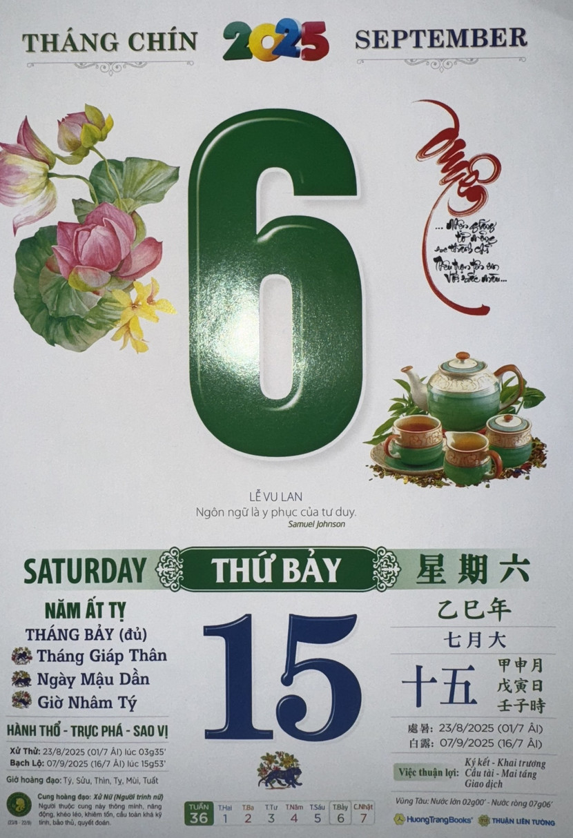 Thứ 7 ngày 6 tháng 9 năm 2025