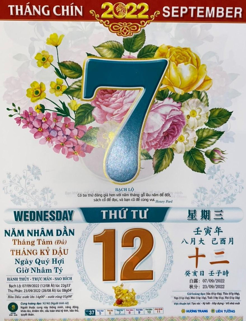 Thứ 4 ngày 7 tháng 9 năm 2022