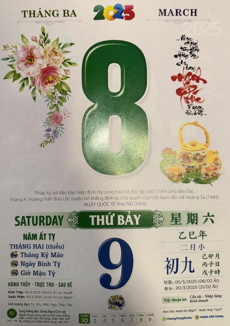 Thứ 7 ngày 8 tháng 3 năm 2025