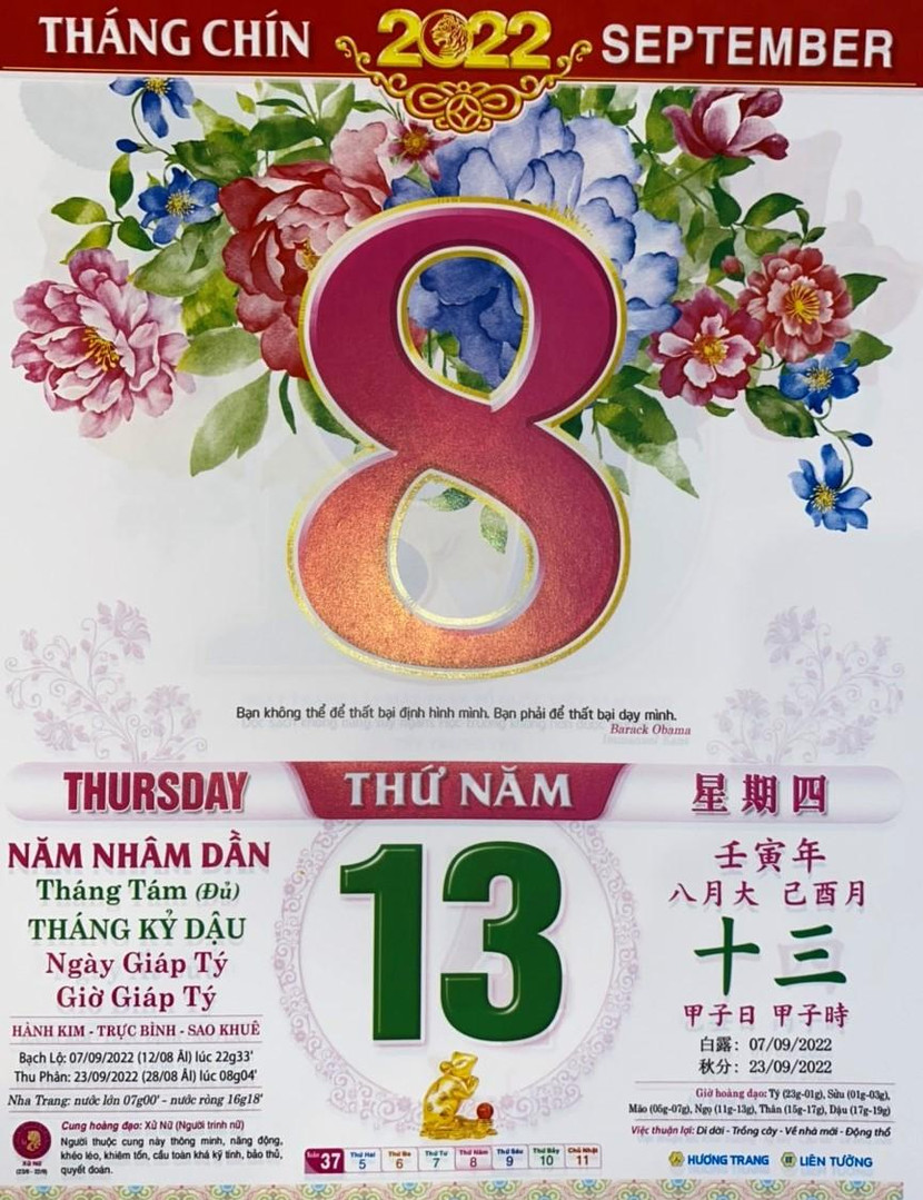 Thứ 5 ngày 8 tháng 9 năm 2022