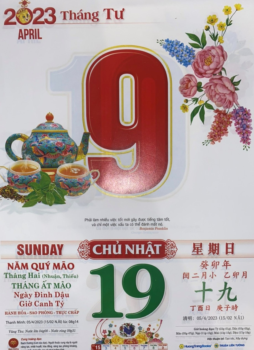 Giờ Hoàng đạo: Tý (23g-01g), Dần (03g-05g), Mão (05g-07g), Ngọ (11g-13g), Mùi (13g-15g), Dậu (17g-19g)