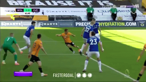 Điển hình là pha bóng ở phút 61, khi Everton đang bị dẫn 2 bàn, cầu thủ chủ nhà sút bóng không có gì nguy hiểm nhưng Pickford lại bắt lóng ngóng và để tuột khỏi tay. May cho thủ môn này là bóng đi về phía khung thành nhưng anh kịp ngăn lại và chưa lăn qua vạch vôi. Trọng tài không công nhận bàn thắng cho Wolves nhưng pha bóng khiến các CĐV Everton phản ứng dữ dội với Pickford.