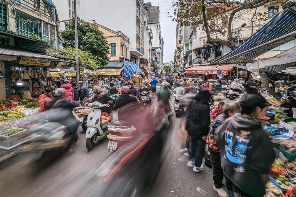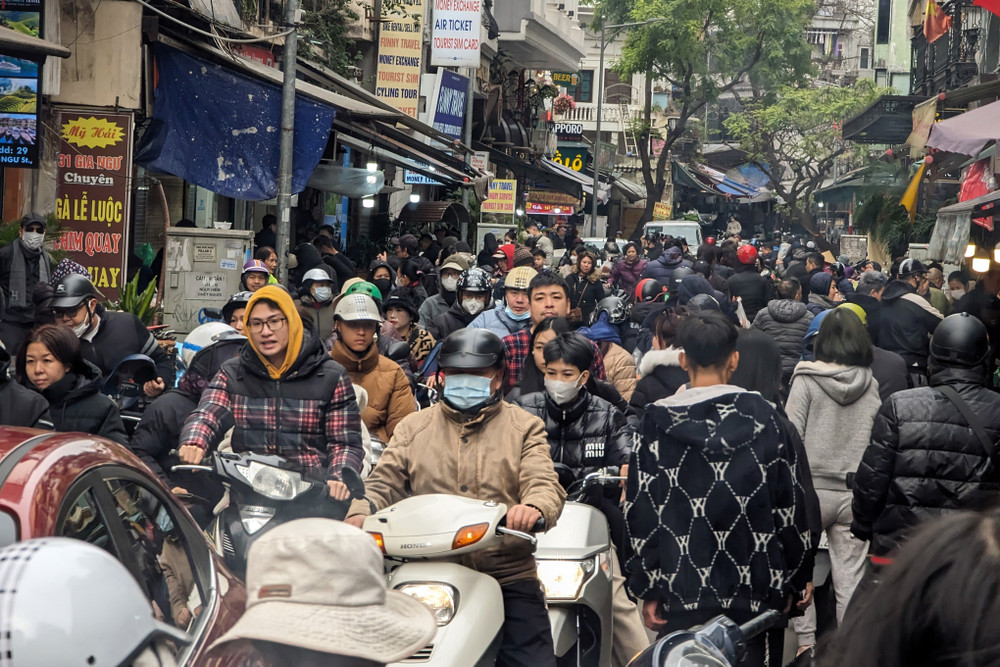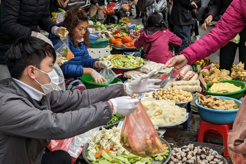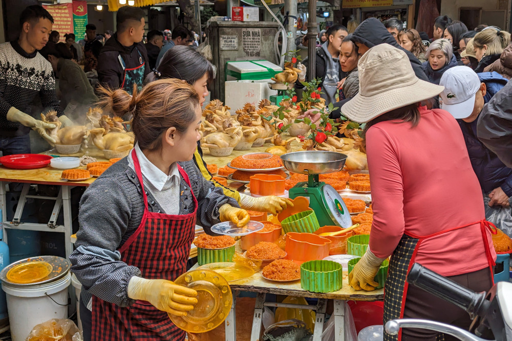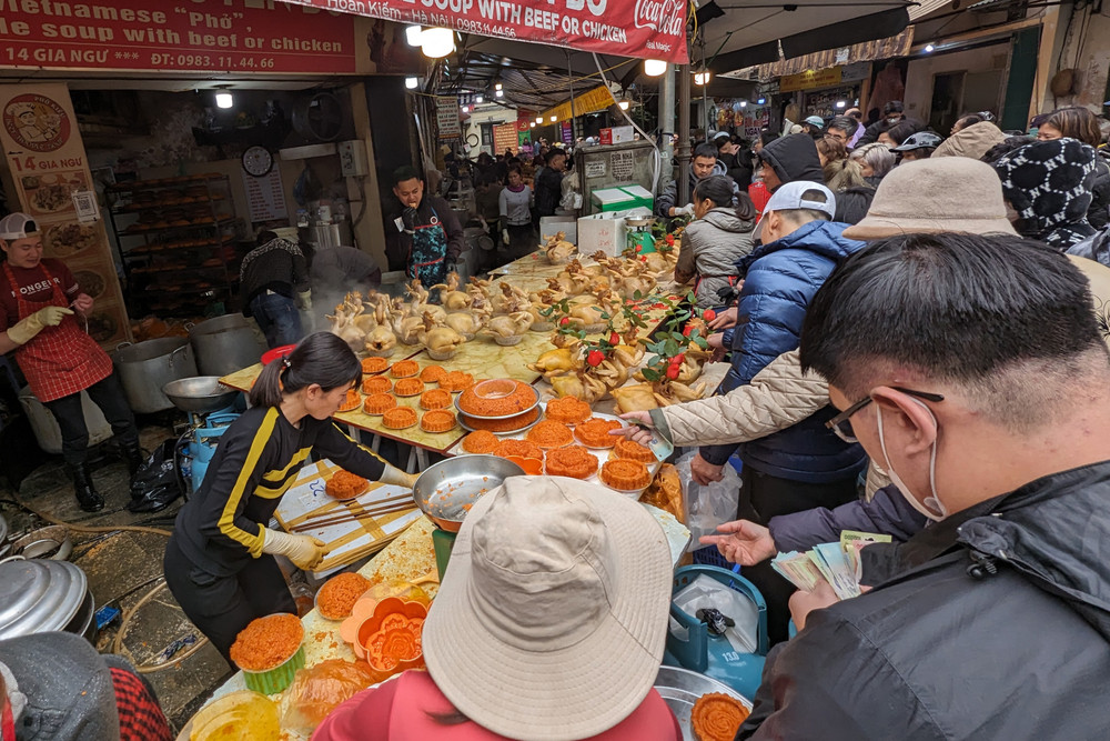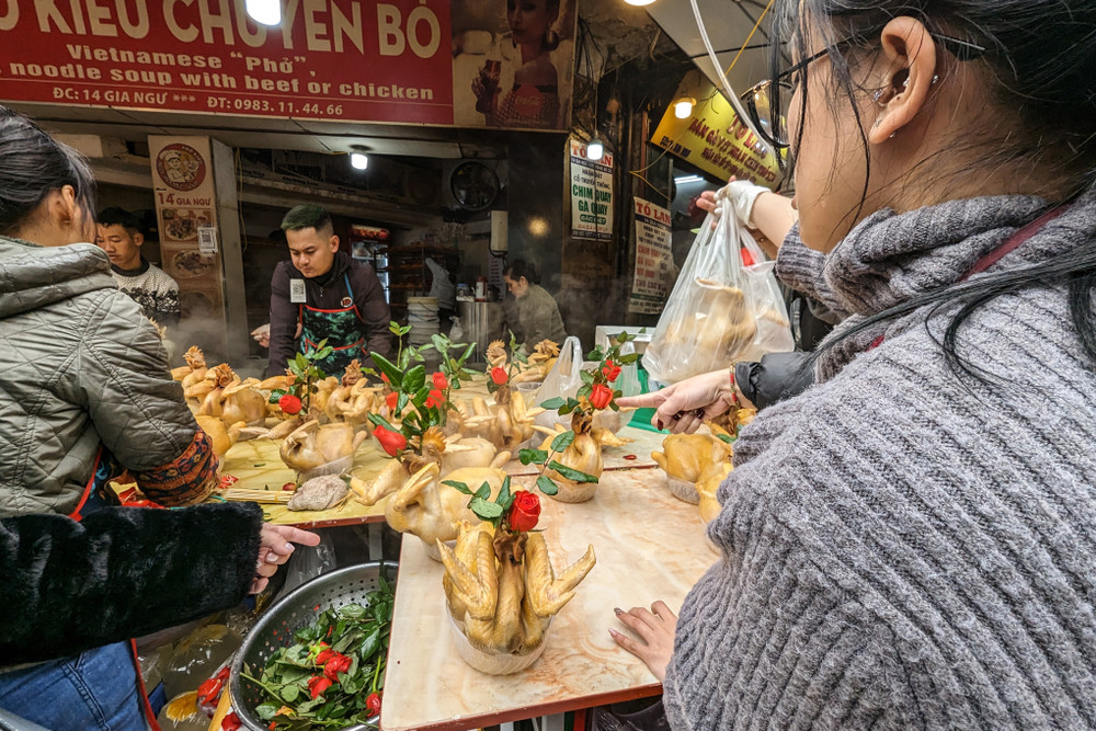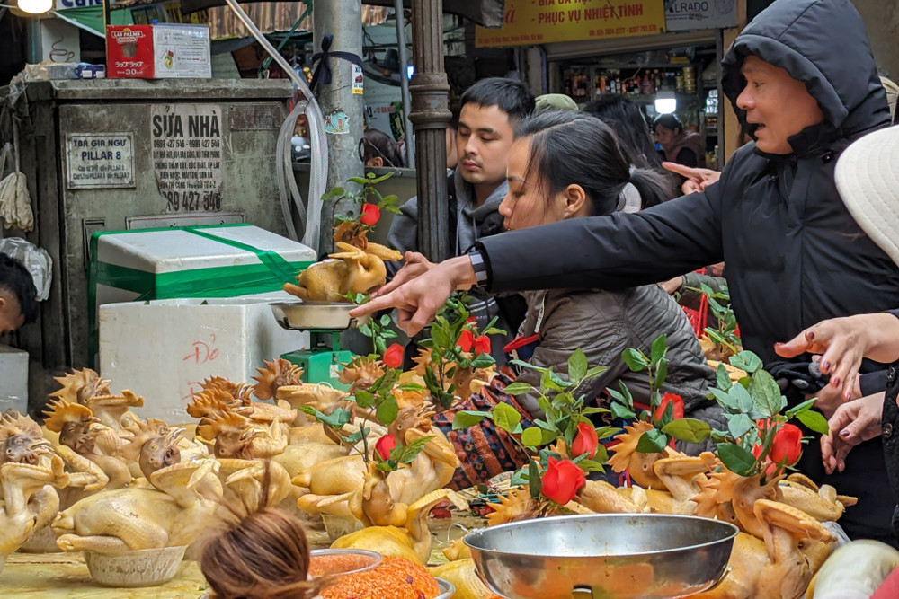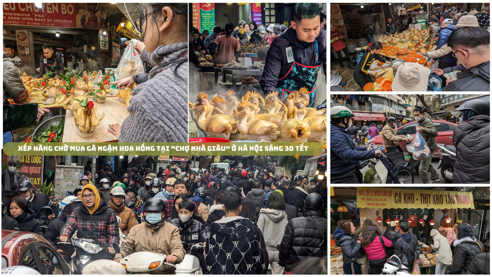 Xếp hàng chờ mua gà ngậm hoa hồng tại "chợ nhà giàu" ở Hà Nội sáng 30 Tết