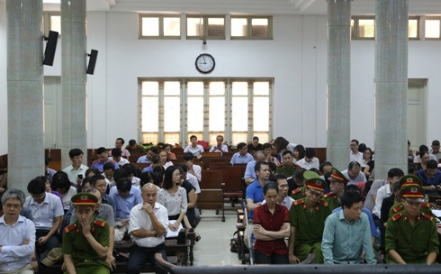 Trong khi ấy, các bị cáo chăm chú lắng nghe quan điểm của Oceanbank hiện nay đưa ra tại tòa
