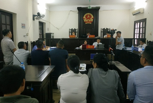 Phiên tòa xét xử các bị cáo chống người thi hành công vụ, tại trụ sở TAND quận Hai Bà Trưng.