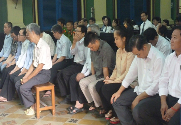 Các bị cáo Trần Huỳnh Nghĩa (SN 1965, nguyên giám đốc công ty TNHH Cát Phương Nam, Chủ tịch Hội đồng thành viên công ty TNHH Trường Phát Đạt), Trần Thị Lệ Thu (SN 1981, ngụ quận Thủ Đức), Huỳnh Công Phúc (SN 1970), Phạm Duy Soạn (SN 1964, nguyên giám đốc công ty TNHH Trường Phát Đạt), Nguyễn Kim Dzoanh (SN 1965, nguyên giám đốc gông ty TNHH Trường Phát Đạt) và Trần Huỳnh Trâm (SN 1937) bị đưa ra xét xử cùng về tội “lừa đảo chiếm đoạt tài sản”.