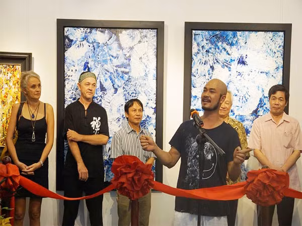 Tiến sĩ, bác sĩ Trịnh Thắng phát biểu khai mạc tại triển lãm tranh cá nhân đầu tiên