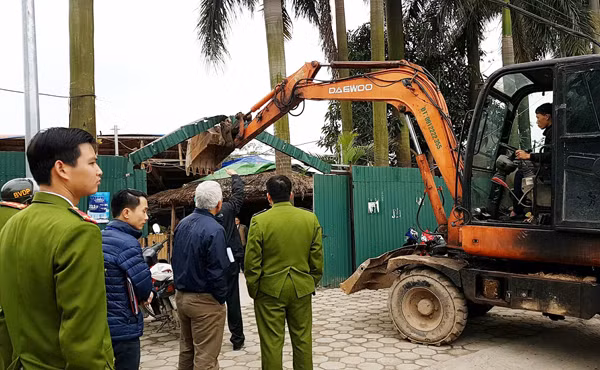 Sáng 10-1, cả một tuyến đường dài gần 2km, lực lượng công an và chính quyền cơ sở đã vào cuộc quyết liệt, xóa bỏ hoàn toàn những công trình xây dựng trái phép trên đất nông nghiệp. Ông Hoàng Mạnh Thủy, Phó Chủ tịch UBND phường Cổ Nhuế 2 cho hay, việc xử lý triệt để các công trình xây dựng trên đất nông nghiệp góp phần thực hiện tốt công tác quản lý đất đai, trật tự xây dựng trên địa bàn phường theo đúng quy định của pháp luật.
