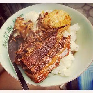 Xôi để ăn kèm thịt, chả, trứng thường là loại xôi trắng. Xôi này, tùy vào từng lựa chọn của chủ cửa hàng mà được nấu bằng các loại gạo nếp khác nhau. Có hàng nấu từ nếp cái hoa vàng, hạt thơm, tròn và mẩy. Có hàng chọn nếp nương, hạt dài như gạo tẻ, nhưng nấu lên thì dẻo vô cùng.