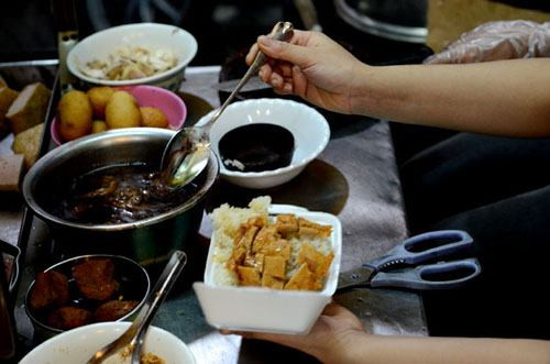 Xôi Sòn đông khách, vì thế ăn được bát xôi, cơ bản là phải biết chờ đợi. Có thực khách ví von, ăn được bát xôi phải chờ lâu như chờ “Cô dâu 8 tuổi” (tên bộ phim dài 2.248 tập của Ấn Độ). Bây giờ thì bà Sòn đã mở lại hàng. Bà bán vỉa hè, từ 7h đi qua phố Cầu Gỗ, chỗ nào có hàng dài người xếp hàng thì đó chính là nơi bạn cần đến. Thực khách đánh giá, xôi Sòn ngon nhất là thịt kho. Những miếng thịt ba chỉ đậm đà, phần bì xốp, rộp nhẹ do đã châm bì, chiên sơ rồi mới cho vào kho. Hơn cả là từng miếng thịt đều được cắm tăm để kho lâu vẫn nguyên dạng.