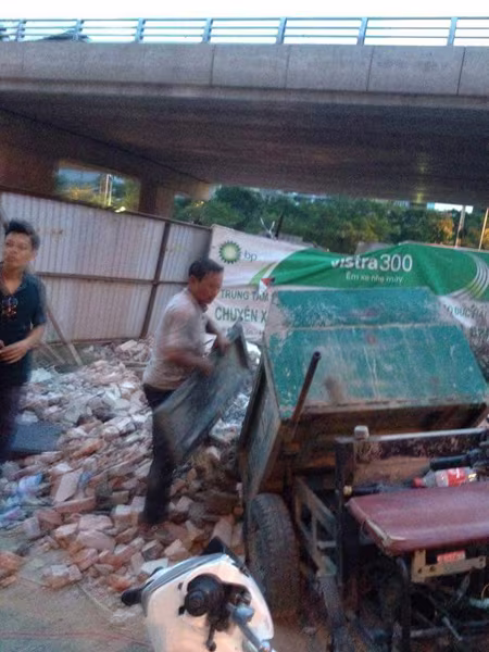 Xe 3 bánh tự chế chở VLXD đã "lộng hành" trong các tuyến phố, đổ phế thải ra môi trường