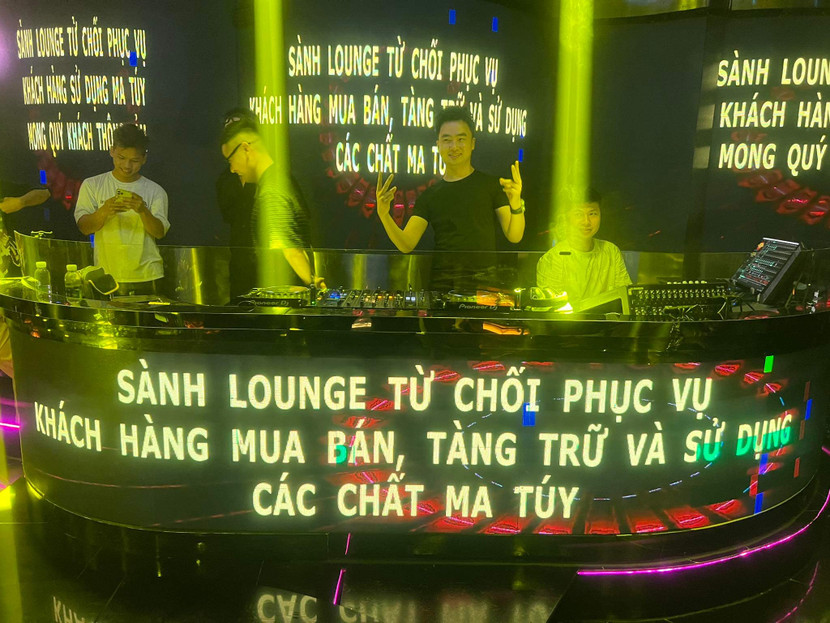 Tại quán Sành Lounge, quản lý quán là Đàm Đắc Hưng đã ký cam kết với tổ công tác vỏ 4 bình khí rỗng bị thu giữ phát hiện trong kho đã từng bị xử lý trước đó, quán chưa đem đi tiêu hủy. Thời điểm gần đây nhất ngày 14-7 quán Sành Lounge từng thu giữ 1 bình khí N2O và bị xử phạt 23,8 triệu đồng. Cách đây 2 ngày (9-8) quan kiểm tra đột suất quán Sành Lounge, tổ công tác đã phát hiện nhiều vỏ bình khí chưa xác định đã qua sử dụng và yêu cầu chủ quán lên làm việc…
