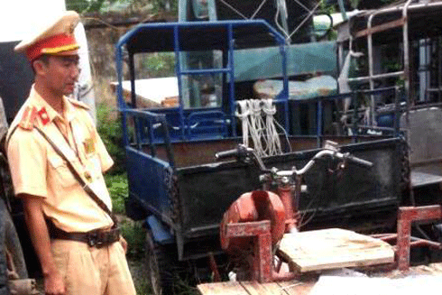 Thiếu tá Nguyễn Ngọc Hải, Đội trưởng Đội CSGT - CAH Đông Anh cho biết, 3 tuần vừa qua, đơn vị đã phối hợp phát hiện và xử lý nhiều trường hợp vi phạm về TTATGT của các trường hợp sử dụng xe 3, 4 bánh tự sản xuất, lắp ráp vận chuyển hàng hóa.