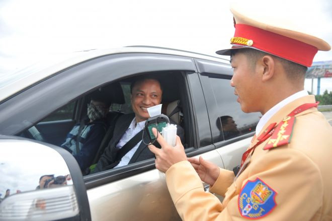 Việc kiểm tra nồng độ cồn của CSGT được đảm bảo đúng những hướng dẫn về an toàn phòng dịch