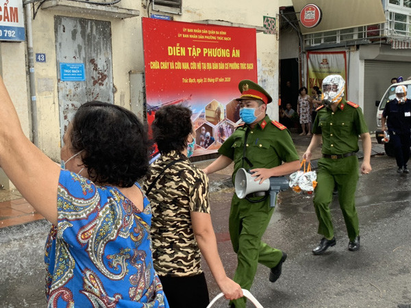 ANTD.VN - Với mục đích huấn luyện, nâng cao kỹ - chiến thuật chữa cháy, cứu nạn - cứu hộ cho lực lượng chữa cháy tại cơ sở, phát huy phương châm 4 tại chỗ, Ủy ban nhân dân phường Trúc Bạch, phối hợp với Công an quận Ba Đình tổ chức diễn tập phương án chữa cháy, cứu nạn, cứu hộ có nhiều lực lượng tham gia tại địa chỉ 41 - phố Trúc Bạch.