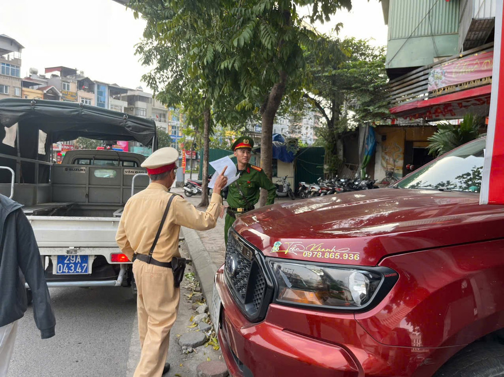 ANTD.VN - Công an phường Kim Liên phối hợp Đội Cảnh sát giao thông (CSGT) số 3, Phòng CSGT Công an TP Hà Nội triển khai xử lý nghiêm tình trạng xe ô tô dừng đỗ trên vỉa hè, dưới lòng đường tại đường Trường Chinh.