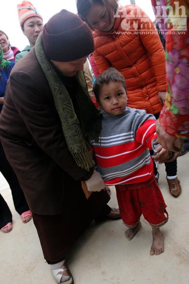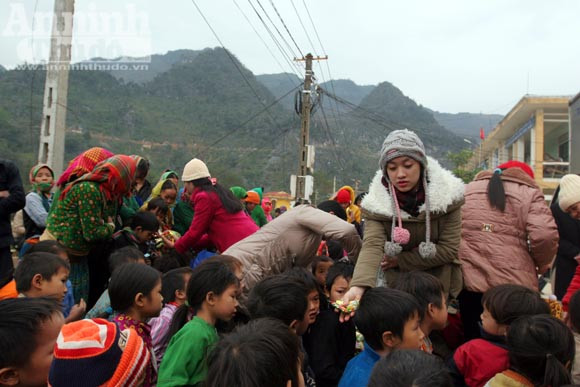 Sáng 31-12, sau một hành trình vật lộn với cung đường hiểm trở từ Hà Giang đến với xã đặc biệt khó khăn Khâu Vai, Mèo Vạc đoàn công tác xã hội tình nghĩa từ Thủ đô Hà Nội đã có mặt tại sân trường xã Khâu Vai trong niềm phấn khởi của cô, trò và dân bản. Từ những hình ảnh người dân lam lũ bên đường từ huyện lỵ Mèo Vạc vào Khâu Vai mà chúng tôi nhìn thấy, cho đến những em nhỏ có mặt tại sân trường như một chiếc kim châm nhói lòng những người miền xuôi. Trong giá rét, các em nhỏ mong manh chiếc áo cũ kỹ sờn rách đứt khuy, những đôi chân trần non nớt lấm lem đất cát, tôi chưa bao giờ nghĩ đó là những thứ bọn trẻ dùng để đối chọi lại với mùa đông buốt giá của cái rét 5 độ C miền núi đá này.