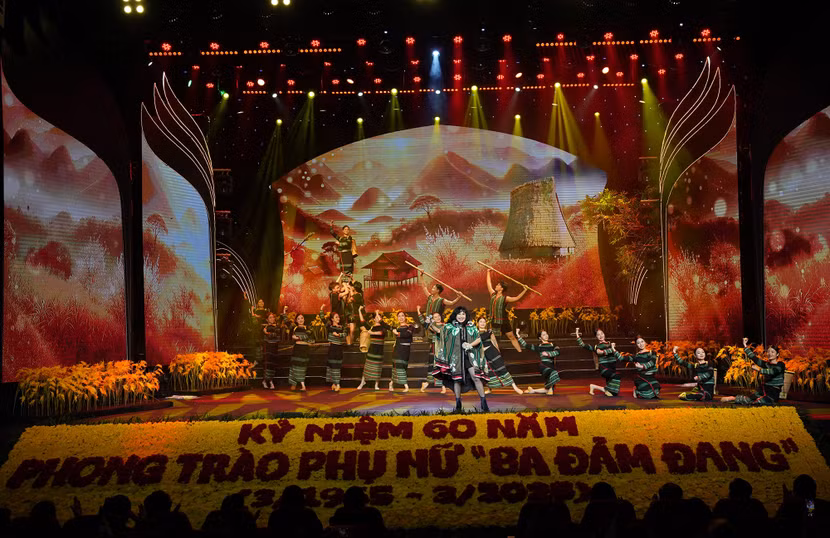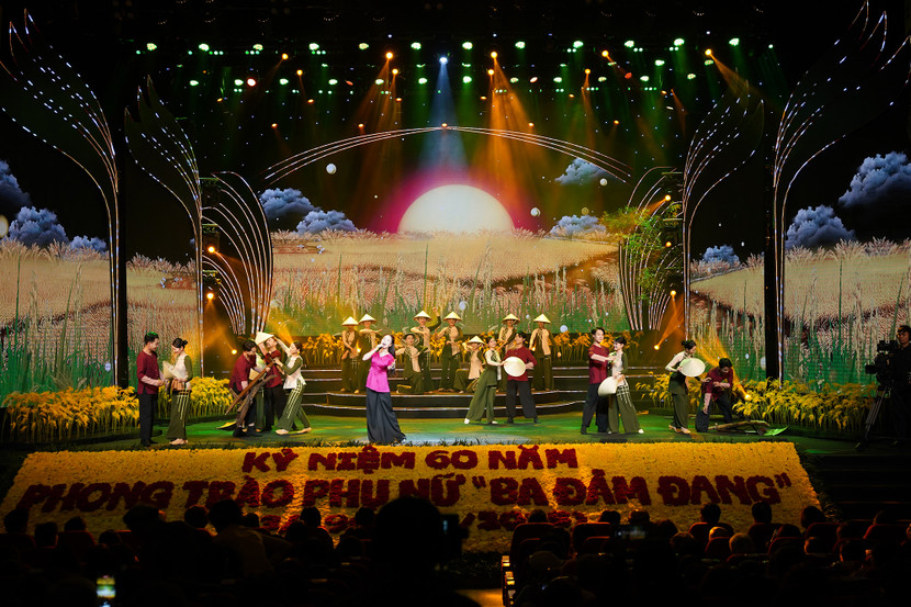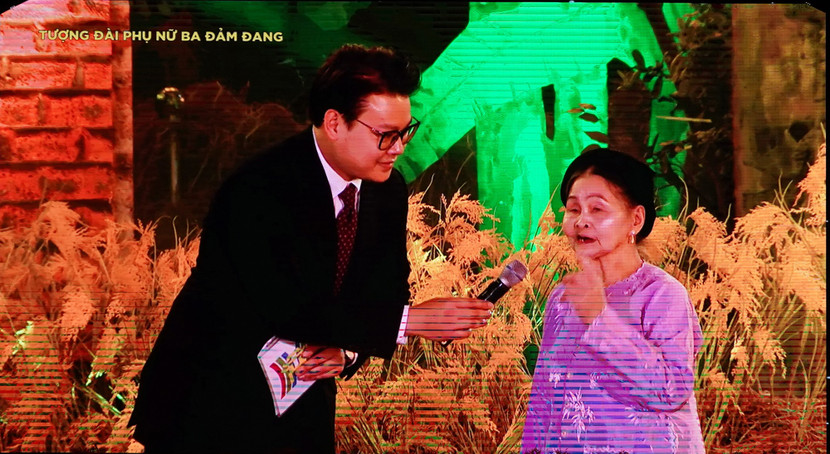 Bên cạnh các tiết mục nghệ thuật, khán giả còn được lắng nghe chia sẻ xúc động từ những nhân chứng sống - những người phụ nữ tiêu biểu từng có đóng góp lớn trong phong trào “Ba đảm đang” trên khắp mọi miền đất nước. Đó là bà Lê Thị Quýnh, nguyên Chủ tịch Hội Phụ nữ xã Trung Châu (huyện Đan Phượng); bà Nguyễn Thị Sang là Trưởng tàu, phụ trách tổ tàu “Ba đảm đang” khi mới 21 tuổi; Đại tá, PGS.TS, Thầy thuốc Nhân dân Nguyễn Kim Nữ Hiếu - Nguyên Phó Giám đốc Bệnh viện Trung ương Quân đội 108. Những câu chuyện đời thực, chân thành và giản dị từ họ đã khắc họa sâu sắc một thời kỳ gian khổ nhưng hào hùng, lan tỏa thông điệp về trách nhiệm, sự cống hiến và lòng yêu nước sâu sắc của người phụ nữ Việt Nam.