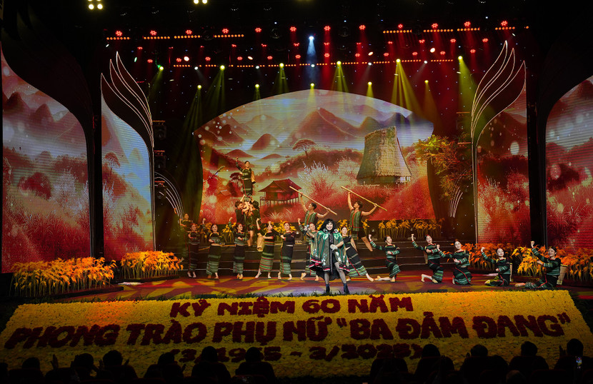 “Sáng mãi truyền thống phụ nữ Ba đảm đang” được dàn dựng công phu, lồng ghép hài hòa giữa âm nhạc, hình ảnh tư liệu và lời dẫn sâu sắc, làm sống dậy ký ức hào hùng của một thời lửa đạn, nơi người phụ nữ gánh vác trọng trách lớn lao nhưng vẫn đầy dịu dàng, đảm đang trong cuộc sống đời thường. Xuyên suốt thời lượng diễn ra đêm nghệ thuật đặc biệt này là những ca khúc, giai điệu đưa khán giả trở về với bức tranh lịch sử bằng âm nhạc như: "Đường cày đảm đang", "Những cô gái quan họ", "Bài ca năm tấn - Hai chị em", "Chào sông Mã anh hùng", "Người con gái sông La", "Quảng Bình quê ta ơi"...Ở đó, hình ảnh những người phụ nữ Việt Nam hiện lên trên đồng ruộng thời chiến, ở vùng quê xa xôi, từ đồng bằng đến miền cao, giữa "mưa bom bão đạn" với tràn đầy tình yêu quê hương, khát khao hòa bình, tinh thần quật khởi chiến đấu và chiến thắng mọi kẻ thù.