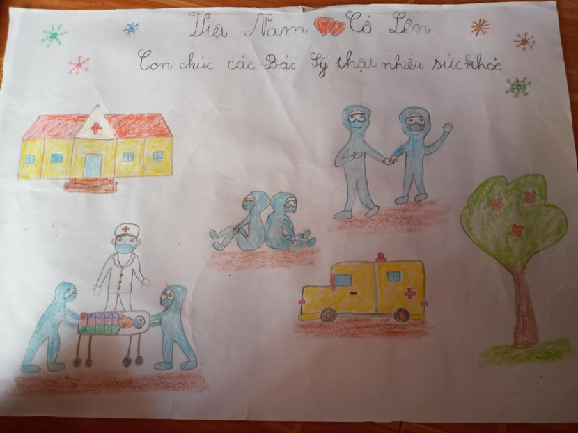 Mỗi bức tranh hay thư tay đại diện cho lời cổ vũ, tấm lòng, tình yêu chân thành của trẻ em gửi đến đội ngũ y bác sĩ làm việc nơi tuyến đầu chống dịch suốt thời gian qua.