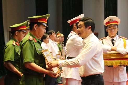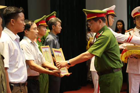Đại tá Đào Thanh Hải trao Giấy khen của Giám đốc CATP Hà Nội cho các tập thể và các cá nhân có thành tích xuất sắc trong công tác bảo vệ dân phố
