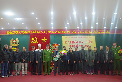 Đại tá Hà Mạnh HÙng - Trưởng CAQ Hoàn Kiếm, TP Hà Nội tặng hoa cho CLB Sỹ quan Công an hưu trí quận Hoàn Kiếm