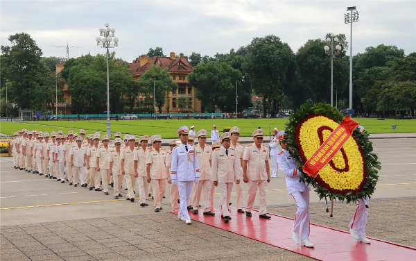 Trước anh linh Chủ tịch Hồ Chí Minh, Đoàn đại biểu Đảng ủy Công an Trung ương, lãnh đạo Bộ Công an bày tỏ lòng thành kính, lòng biết ơn vô hạn trước những công lao to lớn của Người đối với sự nghiệp cách mạng vẻ vang của Đảng và dân tộc Việt Nam nói chung, với lực lượng CAND nói riêng;
