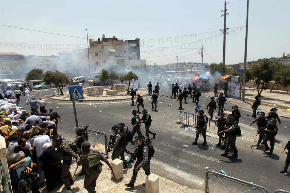 ANTD.VN -Lần đầu tiên kể từ khi chiếm đóng Jerusalem vào năm 1967, Israel đã đóng cửa đền thờ Hồi giáo Al-Aqsa đối với người Palestine, làm bùng lên làn sóng biểu tình phản đối mạnh mẽ từ Palestine và các quốc gia Arab. Biểu tình nhanh chóng biến thành xung đột tại khu Bờ Tây và thành phố cổ Jerusalem trong suốt tuần qua, làm ít nhất 3 người Palestine thiệt mạng và hàng chục người bị thương.