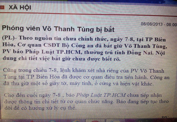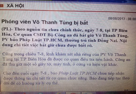 xác nhận phóng viên của báo này, là Võ Thanh Tùng đã bị bắt