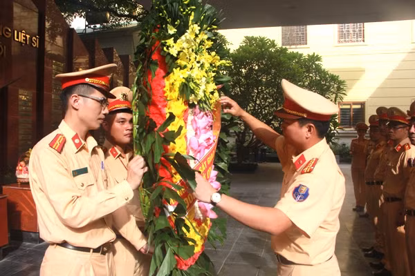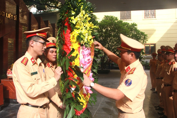 Phòng CSGT dâng hương, đặt vòng hoa tưởng niệm, tri ân công lao đóng góp vô bờ của các anh hùng, liệt sỹ Công an Thủ đô
