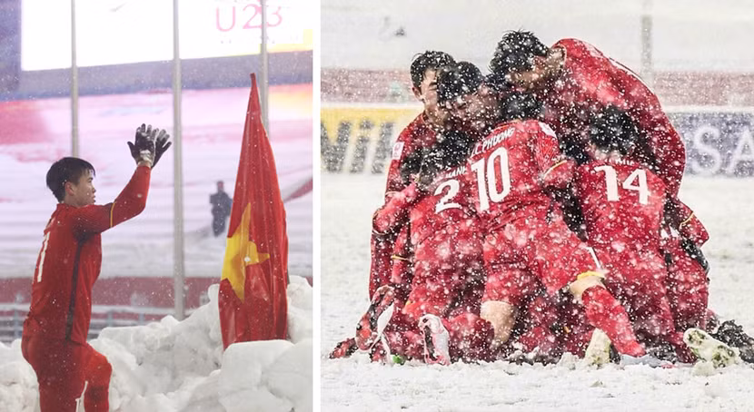 Âm hưởng hào hùng của Tiến quân ca vang vọng 4 khán đài, dội lại giữa sân nơi cờ đỏ sao vàng hiên ngang trước mưa tuyết Thường Châu đã mang đến niềm tự hào vô bờ cho triệu triệu trái tim Việt ở quê nhà.