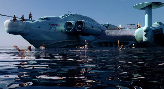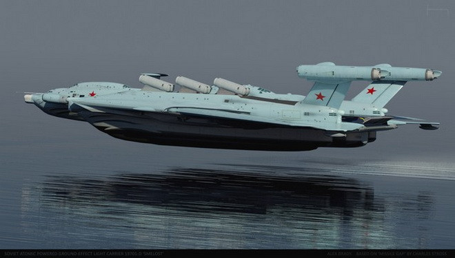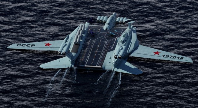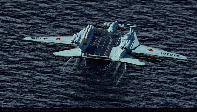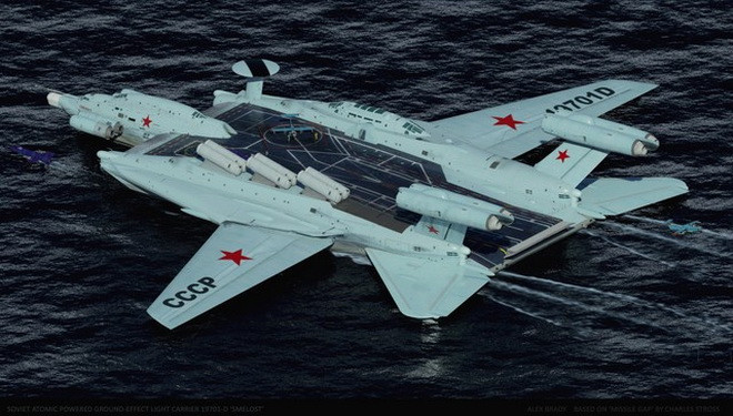 Ý tưởng thiết kế tàu sân bay hạt nhân dạng Ekranoplan siêu độc đáo của Liên Xô
