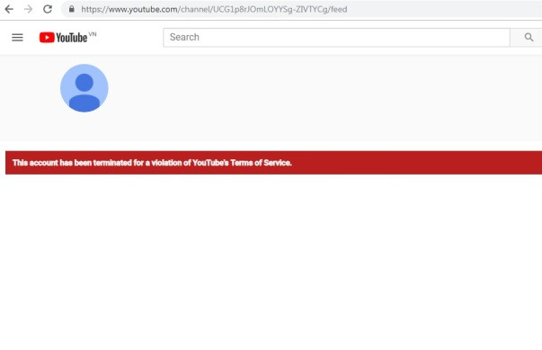 Người theo dõi tài khoản này khi tìm kiếm trên Google trưa 3-4 sẽ được trả về kết quả "Tài khoản này đã bị chấm dứt hoạt động do vi phạm Điều khoản dịch vụ của YouTube".