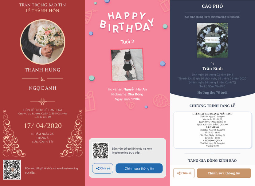 Zalo cũng đã thiết lập trang tạo sự kiện trực tuyến – Zalo Event, hỗ trợ đưa cuộc sống về trạng thái bình thường mới. Với trang này, người dùng có thể tạo sự kiện sinh nhật, lễ cưới, lễ tang mà không cần tiếp xúc trực tiếp, tránh lây lan virus corona. Số truy cập trang tạo sự kiện này trong thời gian qua là 1.447.365.